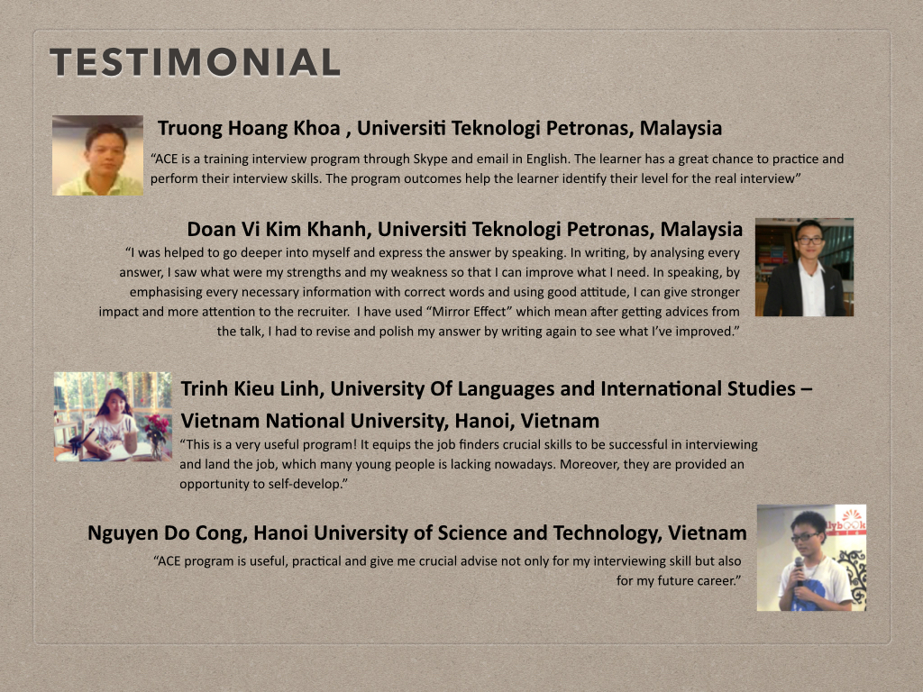AIM Career English programs are specially designed to help candidates improve their English speaking skills especially for Career-related interviews with their “dream Company”.